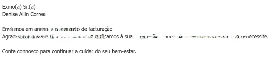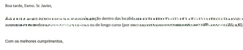- Imagen 1: el uso de “Exmo. Sr. Javier”, que significa “Excelentíssimo Senhor Javier”, para dirigirse a una persona de forma individual. En español, sería impensable que una empresa de servicios dirigiera un email a un cliente de esta manera.